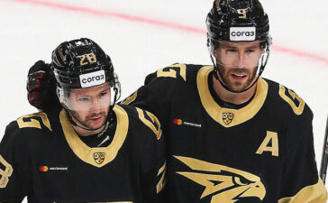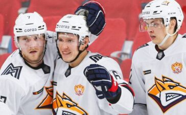 Хоккеисты «Металлурга» Фото: КХЛ «Металлург» в выездном матче регулярного чемпионата КХЛ разгромил «Автомобилист» — 6:2 (2:0, 2:2, 2:0). У победителей...
